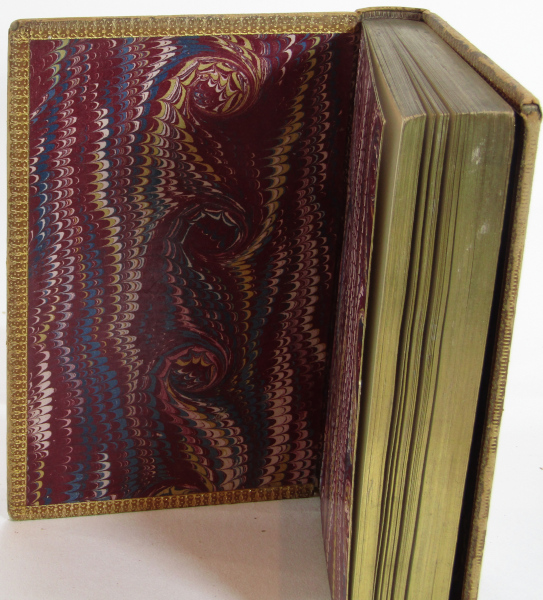 Full leather binding of the collected works of the late 18th and 19th century Scottish poet who played a role in the creation of University College London. Includes The Pleasures of Hope. With a critical memoir by William Rossetti and b/w illustrations by Thomas Seccombe. Engraved title page and frontisportrait. No date but c. 1880. Marbled end-papers. All edges gilt, inner dentelles. Rubbing to edges and joints, bumping to corners. Tanning to page edges but contents clean and sound. Good overall.
