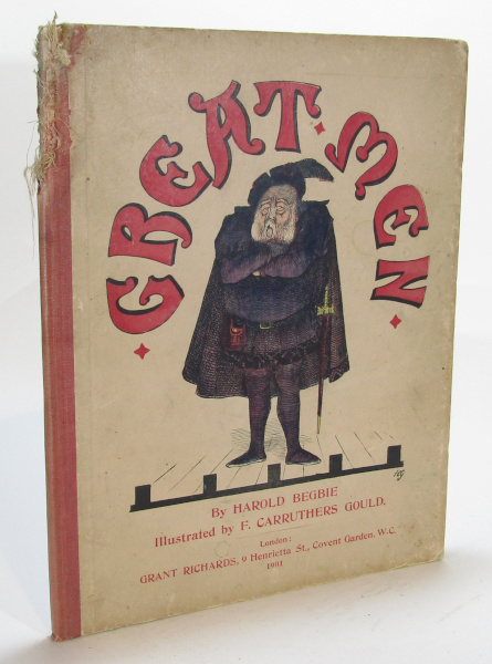 Humorous collection of verse and caricature, satirizing great men of the day as historical or fictional figures, including Arthur Balfour as King Arthur. 4to. Wear to spine with portion frayed and missing from top. Toning to covers. Rubbing to edges. Contents clean and binding tight. Fair+