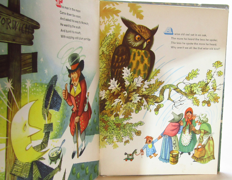 Splendidly and brightly coloured, illustrated collection of nursery rhymes by the well known artists and inventor, Kubasta. 4to. Rubbing and tearing to spine, rubbing to edges. Wear to front hinge. Mild toning within, else sound. Good overall.
