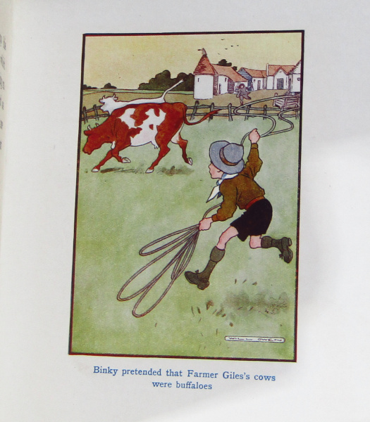 No date but c. 1920. Scarce volume from the Binky Books series, pictured by Will Owen, with colour plates and b/w illustrations. 12mo. Backstrip missing, foxing to page edges and covers. Binding holding and contents clean. Fair.