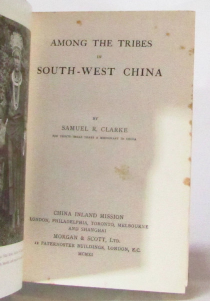 First edition. Study of the peoples, history and topography of Southern china, especially the Miao people and other significant other tribes. With a second part describing missionary activities in that region. Plus a short language guide and lexicon. With b/w images of photographs. Sunning to spine. Foxing to page edges and occasionally within. Binding sound. Good.