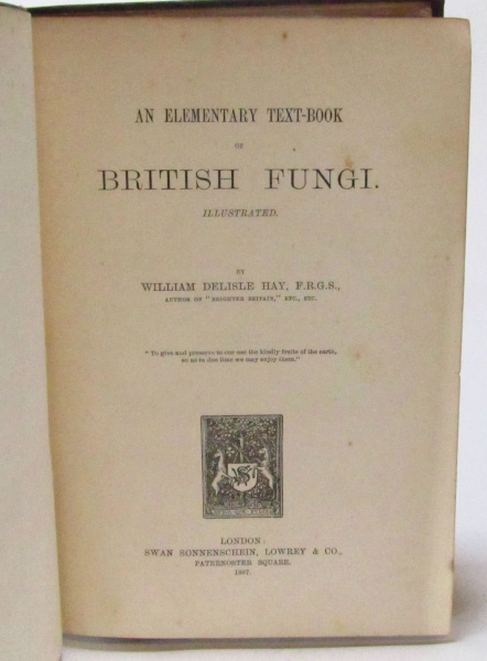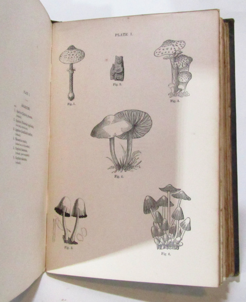 Comprehensive guide to mushrooms and fungi, describing the various species, their biology, locations and even recipes. With numerous b/w plates to rear. Top edge gilt. Occasional pen notes to margin. Cracking to front joint but binding sound. Tanning to page edges. Good overall.