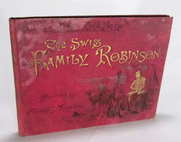 Nicely presented verison of Wyss' classic story, retold by Rae. With 12 tissue guarded colour plates by Florence Maplestone, plus further lithographic illustrations within the text. all edges gilt. Oblong 8vo. Covers are stained and toned. Tanning within, else clean and sound. Good overall.
