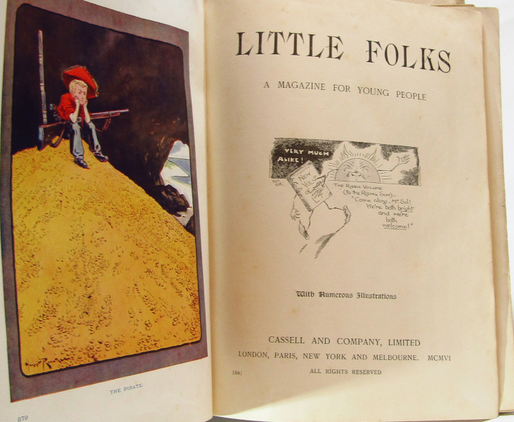 No date but c. 1909. Collection of poetry, short stories, articles, illustrations, sketches, music and more. Advertisements to rear. Cracking to front hinge but binding holding. Wear and rubbing to covers. Tanning to page edges but contents clean. Previous owner's inscription to front pastedown. Fair.
