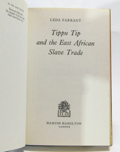 Scarce account of the life and activities of Hamad bin Muhammad bin Juma bin Rajab el Murjebi, commonly known as Tippu Tip, who built a slave trading empire in the second half of the 19th century, with expeditions and influence extending all over Africa from his Zanzibar base. With b/w images. Maps to end-papers. Some sunning to spine, and cover of DJ. DJ is price-clipped. Mild tanning to page edges, else clean and tight, Very good overall.