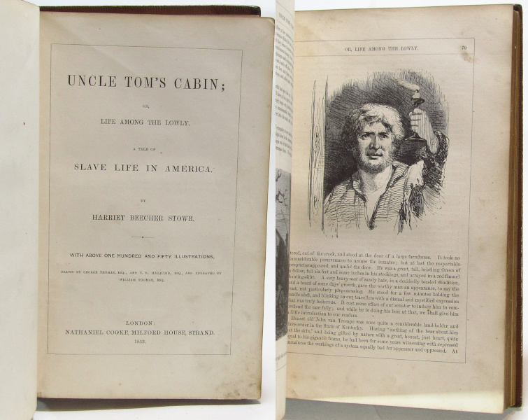 Impressive edition and binding of Stowe's pioneering novel on the conditions of slavery. With over 150 b/w illustrations. Full leather. All edges gilt. Marbled end-papers. Outer dentelles. 8vo. 392pp. Rubbing to spine and fading to gilt decoration. Marking to covers. Mild toning within, binding sound. Good.
