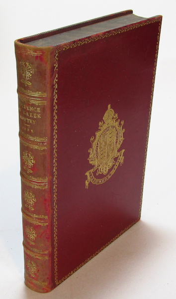 'Lectures delivered in 1892 on the Percy Turnbull Memorial Foundation in The Johns Hopkins University.' With lectures on Homer and Epic Poetry, Pindar, Greek Drama etc. Full leather prize binding with King Edward VI, Stratford crest to cover and prize plate to front pastedown. Raised bands and gilt decoration to spine, Inner and outer dentelles, marbled paper edges with matching end-papers. Rubbing and toning to spine. Contents clean and sound. Good. '