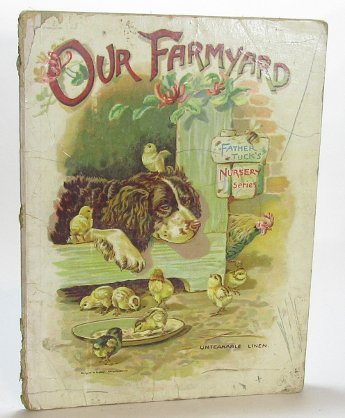 Charming children's story from the Father Tuck Nursery Series. With chromolithographic illustrations. No date but c. 1900. Rubbing and wear to covers. Wear to spine around staples. Marking to covers. Toning to edges. Previous owner's name to front past [more...]