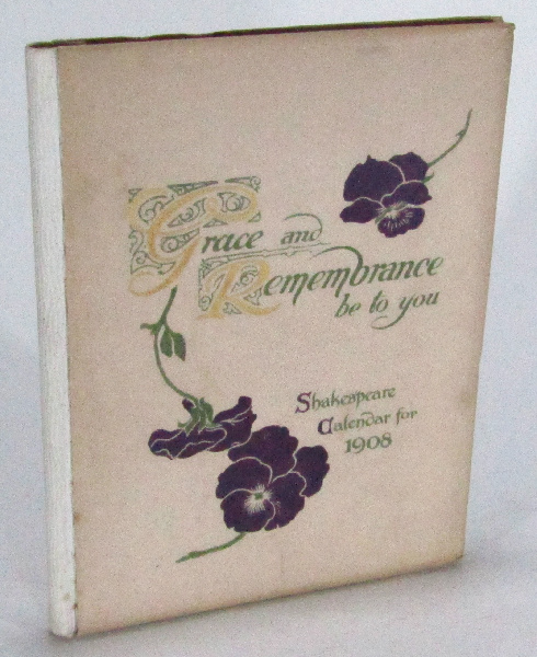 Nicely produced calendar, with colour illustrations and quotations from Shakespeare for each month. With gilt raised decorations and initials. Bradel style binding with beveled edges and parchment style paper to boards. 12mo. Toning to covers. Previous ow [more...]
