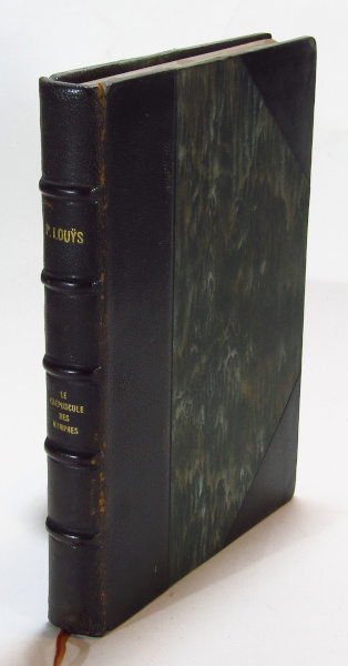 From the complete works of Louys, his 1825 The twilight of the nymphs, with striking illustrations by Colbert. Half leather with marbled paper to boards. Raised bands to spine. Top edge gilt. Rubbing to edges, light foxing to fore-edge. Binding sound. Go [more...]