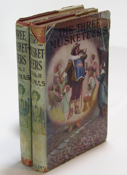 No date but c. 1950. Pleasant two volume edition of Dumas' novel. With frontispiece. Red cloth with illustrated duskjackets. 16mo. DJs has tearing with loss to edges. Toning to edges, binding sound and contents clean. Scarce with dustjackets. Good. [more...]