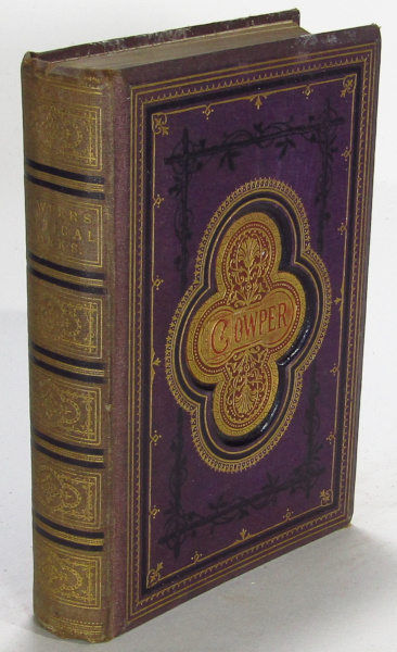 Impressive decorative binding of Cowper's poems, with a memoir of the author plus b/w illustrations by Hugh Cameron. Decorative purple cloth with gilt design and terrific debossed gilt emblem to cover. Beveled edges. All edges gilt. Toning to spine. Mild [more...]