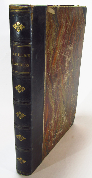 No date but c. 1870. Handsome half leather binding of Cassell's illustrated edition of Bunyan's allegorical story. With numerous excellent b/w engravings by H. C. Selous and M. Paolo Priolo. With decorated initials and ornate borders. Marbled baords. 4to. L [more...]
