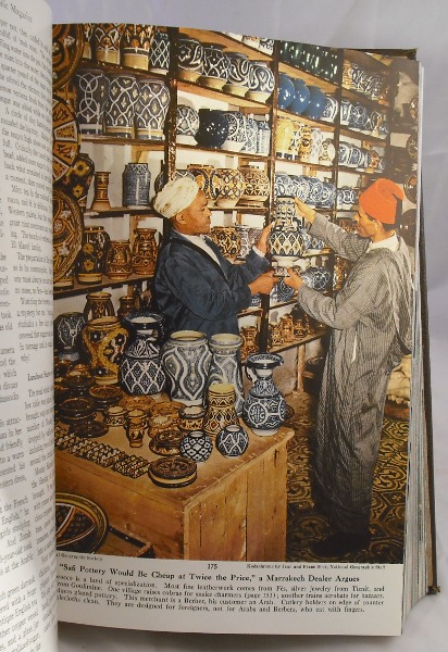 Impressive decorative leather binding of the collected National Geographic Magazines from January 1955 to June 1955. Features hundreds of articles and photographs in both full colour and b/w on a variety of topics including exploration, science, wildlife and biology, history and more. With full index. Leather binding with elaborate blind stamped design. Marbled end-papers. Some light shelfwear but contents crisp and clean. Very good overall. **This volume is heavy and increased shipping fees may apply to overseas orders**