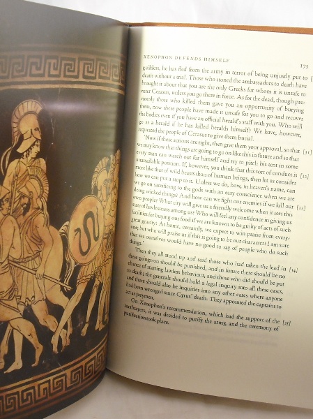 Handsome Folio Society edition of Xenophon's great Anabasis, the expedition of 10,00 Greek mercenaries in the service of Cyrus. Betrayed after the death of Cyrus, they had to fight their way home through hostile and inhospitable territory. The inspiration for the film The Warriors. With illustrations by Bob Venables in the style of ancient greece. Complete with slipcase. Fine condition.