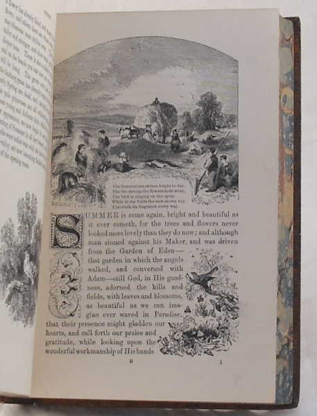 Handsome full leather prize binding of this young-persons guide to the outdoors from the Boy's Own franchise. Arranged by season it encompasses wildlife, activities and attendant history. With numeorus b/w engravings. Raised bands and gilt decoration to spine. marbled page edges with matching marbled end-papers. Inner and outer dentelles. School crest to cover but no prize plate or inscription. Rubbing to leather and joints. Contents prim and clean and binding sound. Good.