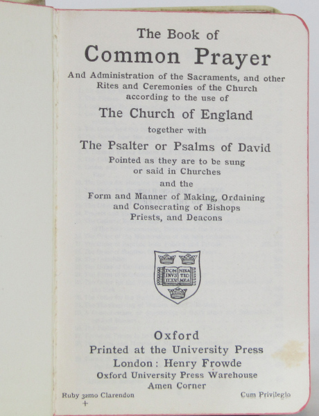 The Book of Common Prayer; The Psalter, or Psalms of David; Hymns Ancient and Modern