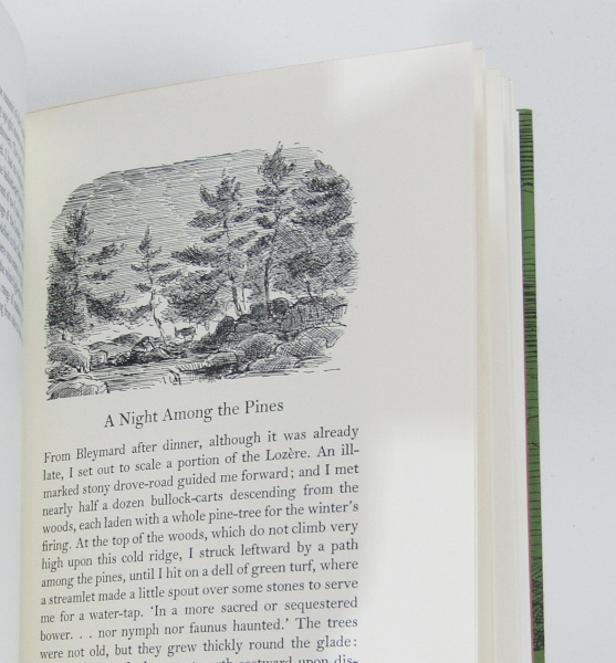 Charming Folio edition of Stevenson's first published work. Written to secure independence from his parents and a future with the woman he loved, Travels with a Donkey is a pioneering work of travel writing. Detailing Stevenson's journey through the curious Cevennes mountain region of France with a truculent donkey as a companion. Interesting not only for its author and setting but also as one of the earliest depictions of outdoor recreational camping. Olive cloth boards with pictorial design. Complete with slip case. Slipcase is bumped to top and bottom. Very slight sunning to spine. But contents crisp and clean. Very good overall.