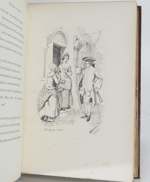 Red cloth with elaborate gilt design. Featuring b/w illustrations by Hugh Thomson. Beveled edges. Top edge gilt. Fore-edge rough cut. Some light rubbing to edges. Mild spotting to end-papers. Conents clean and tight. Very good.