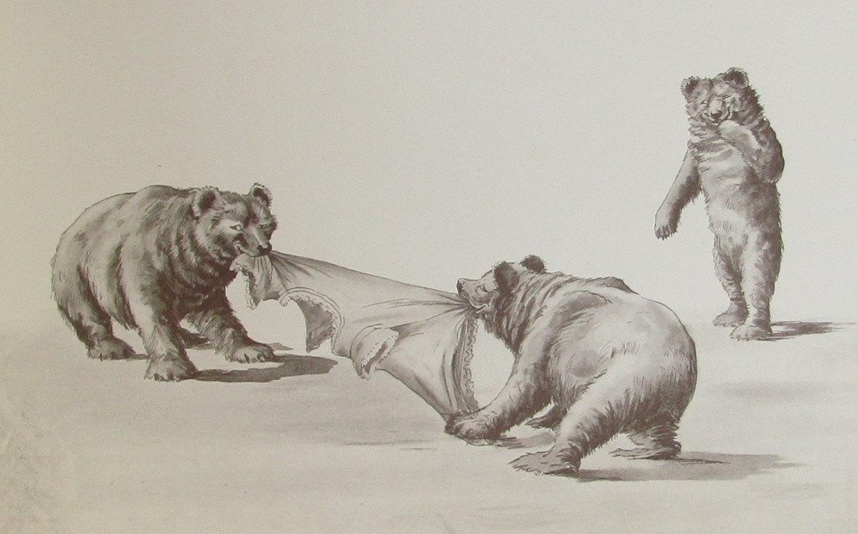 Charming collection of verse on Brown Bears by the prolific Parkers. With sepia toned illustrations throughout. Oblong 4to. No date but c. 1900. Rubbing to edges. cracking to hinges but binding sound. Some mild toning within but text-block generally clean. Fair+