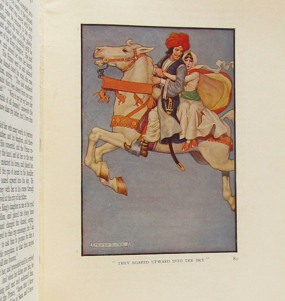 Olcott's retelling of tales from the Arabian Nights, based on Edward Lane's translation. including Ali Bab, Sinbad, Alladin etc. With 8 colour illustrations by Orr. 4to. Frontispiece loose. Rubbing and bumping to edges. Foxing to page edges. Previous owner's pen note on the pronunciation of Scheherazade. Binding sound. Good overall.