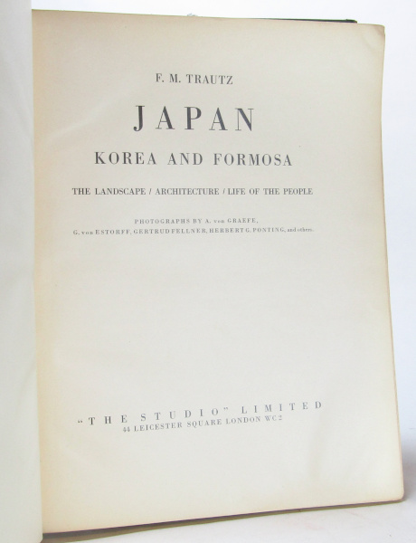 No date but c. 1920. Impressive collection of 256 b/w images of photographs, taken by various photographers. With descriptions in English, Japanese, French, German and Italian. 4to. Some tearing to spine. previous owner's name to ffep. Some toning to edges and staining to bottom of text-block, not affecting images. Good overall. *Due to size and weight, extra shipping fees may apply to overseas orders*
