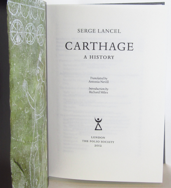 Striking Folio Society edition of the English translation of Lancel's comprehensive 1992 history of the Carthaginian Empire, from its founding by Phoenician traders and its associated myths, to its heights under the forebears of Hannibal, to its destruction by Rome and Scipio. With an introduction by Richard Miles and colour images. Decorative cloth covers, complete with slipcase. Slipcase has some mild toning, volume is crisp and clean. In Fine condition.