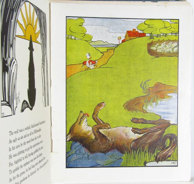 No date but c. 1920. Beautifully illustrated retelling of grimm's brothers fairy story. With colour and two-tone illustrations by Mabel Dearmer. Splitting and tearing to spine. Pencil marks to blank page. Binding weakening, Fair.