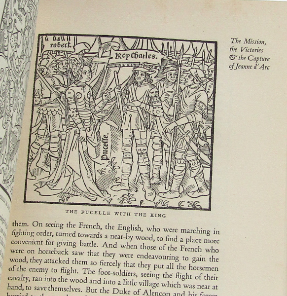 'Being the verbatim reports of the proceedings of the Orleans manuscript, translated with an introduction by W. S. Scott.' First Folio Society edition of the trial of Joan of Arc. With b/w images taken from contemporary manuscripts. Lacks slipcase. Light toning to spine. Light foxing to page edges and front matter. Otherwise clean and tight. Good.