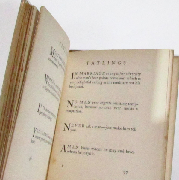 Collection of humourous and risque epigrams, with b/w illustrations by Anne Harriet Fish. Toning to DJ. Light foxing to page edges. Contents clean and sound. Good.