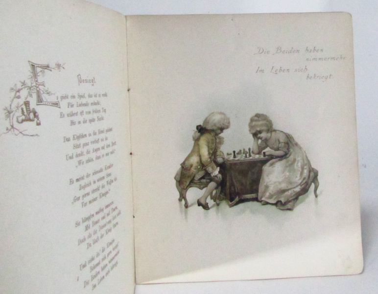 No date but c. 1900. collection of German verse on the theme of youth, with lithographic illustrations by Bennett. Bound with chord. Toning to cover. Rubbing to edges. Tanning to page edges, occasional spotting within. Good.