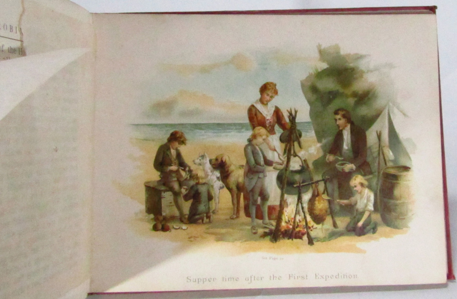 Nicely presented verison of Wyss' classic story, retold by Rae. With 12 tissue guarded colour plates by Florence Maplestone, plus further lithographic illustrations within the text. all edges gilt. Oblong 8vo. Covers are stained and toned. Tanning within, else clean and sound. Good overall.