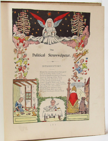 Third edition of Begbie's political satire in verse, with numerous chromolithographic illustrations. 4to. Toning and and small pen mark to covers. W. H. Smith embossed stamp to rear end-paper. Occasional small, slight smudges within. Contents otherwise clean and binding sound. In a protective jacket. A nice example. Very Good.