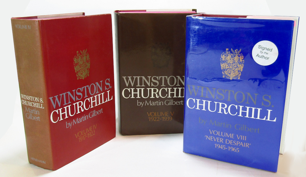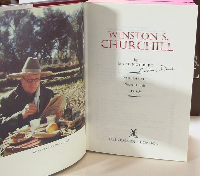 Winston Churchill: Youth 1874-1900, Young Statesman 1901-1914, 1914-1916, 1917-1922, 1922-1939, Finest Hour 1939-1941. Road to Victory 1941-1945. 'Never Despair' 1945-1965 [signed] (eight volumes)