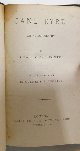 Pleasant binding of Bronte's enduring novel. With an introduction by Clement K. Shorter. No date but c. 1910. Blue cloth with gilt decoration to spine. Top edge gilt. rubbing to edges. Foxing to page edges. Previous owner's mark to ffep. Stain to corner of title page, extending inwards for a couple of signature, similarly stained from rear end-paper. Occasional spotting within. Fair.