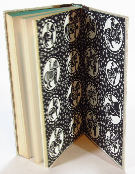Pleasant Quarter leather Folio Society edition of Chacuer's canterbury Tales, done into contemporary verse by Coghill. The first printing. Illustrated by Woodcuts by Edna White. Decorated end-papers. Complete with slipcase. Mild shelf-wear to slipcase. Rubbing to leather, toning/light marking to page edges, contents clean and sound. Good.