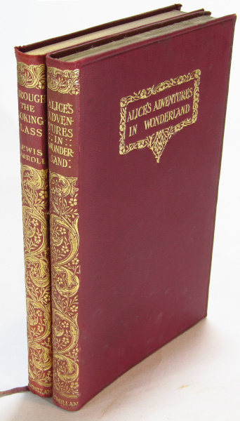 Attractive set of Carroll's novels: Alice in Wonderland (1928) and Through the Looking Glass (1926). Later editions featuring John Tenniel's original illustrations. Publisher's soft leather covers with gilt decoration. Top edge gilt. 12mo. some mild shelf-w [more...]
