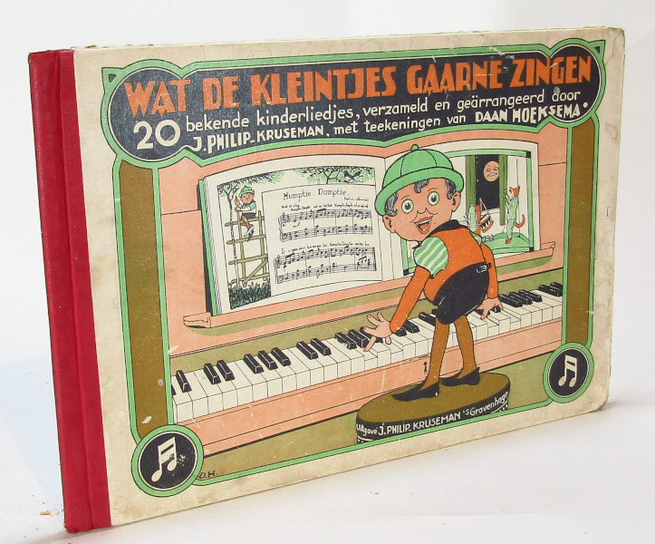 '20 bekende kinderliedjes, verzameld en gearrangeerd door J. Philip Kruseman, met teekeningen van Daan Hoeksema'. No date but c. 1920. Collection of Dutch children's songs with music and lyrics. With illustrations throughout. Oblong 4to. Rubbing and bumpin [more...]