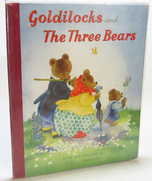 No date but c. 1940. Nicely present retelling of Goldilocks, done and illustrated by Willy Schermele. With colour illustrations throughout. In protective jacket. Some mild shelf-wear to covers. Light tanning, else clean and sound. Good+ [more...]