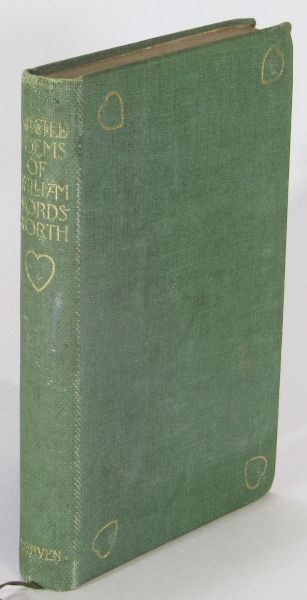 Cute edition of Wordsworth's selected poems. Green cloth with gilt hearts. Includes I wandered Lonely as A Cloud and others. Some bumping to edges. Tanning to page eges. Foxing to fore-edge but clean and sound. Good. [more...]